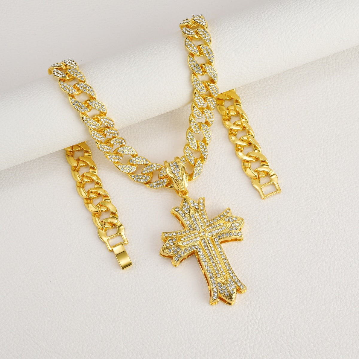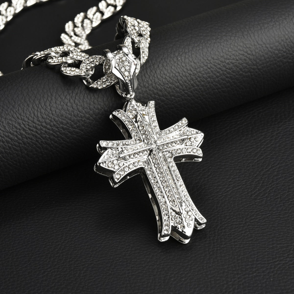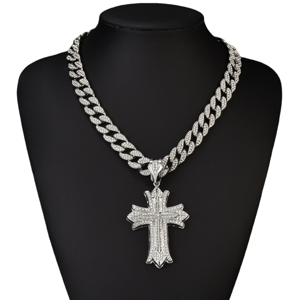 Iced Cross Pendant Cuban Chain Necklace for Men – Hip Hop Jewelry