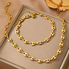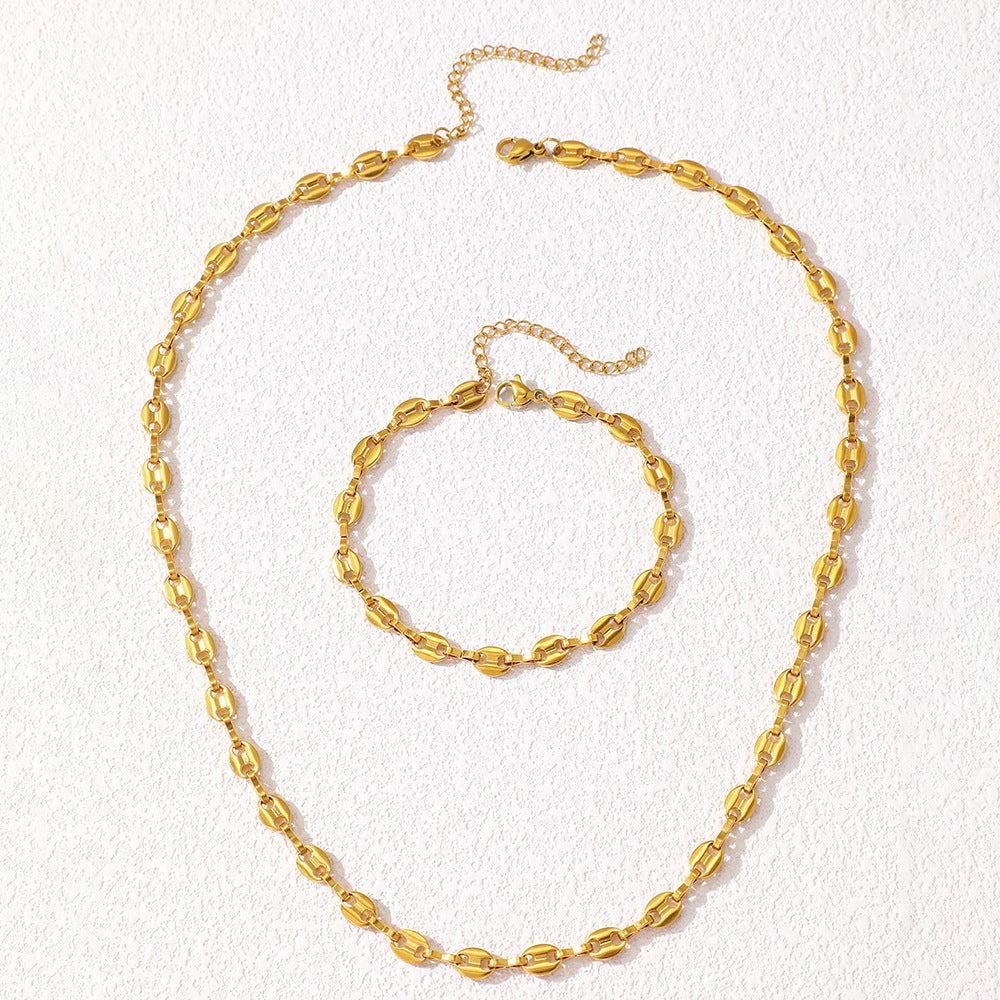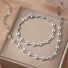 Crafted with precision-cut linked plates, this unisex chain set delivers a smooth, polished feel that stands out instantly. Its balanced design and comfortable weight make it a reliable go-to for both casual and dressed-up outfits.