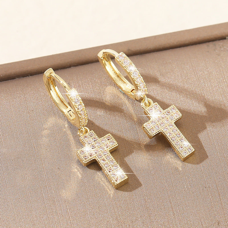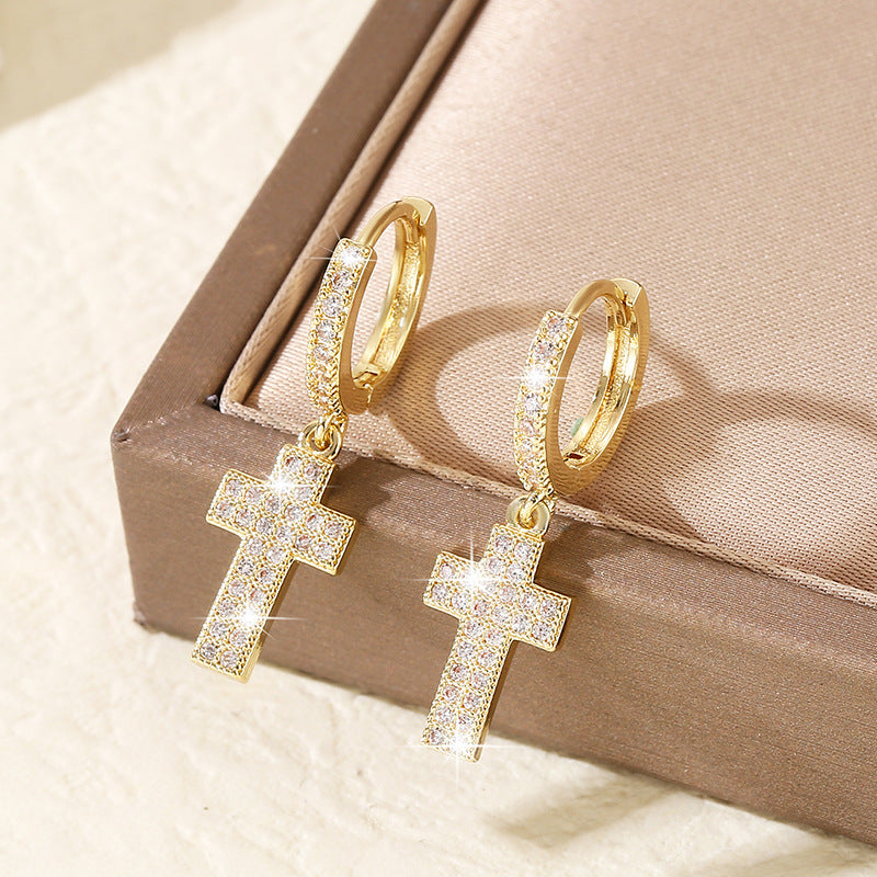 Men’s Cross Drop Hoop Earrings Stainless Steel Zircon