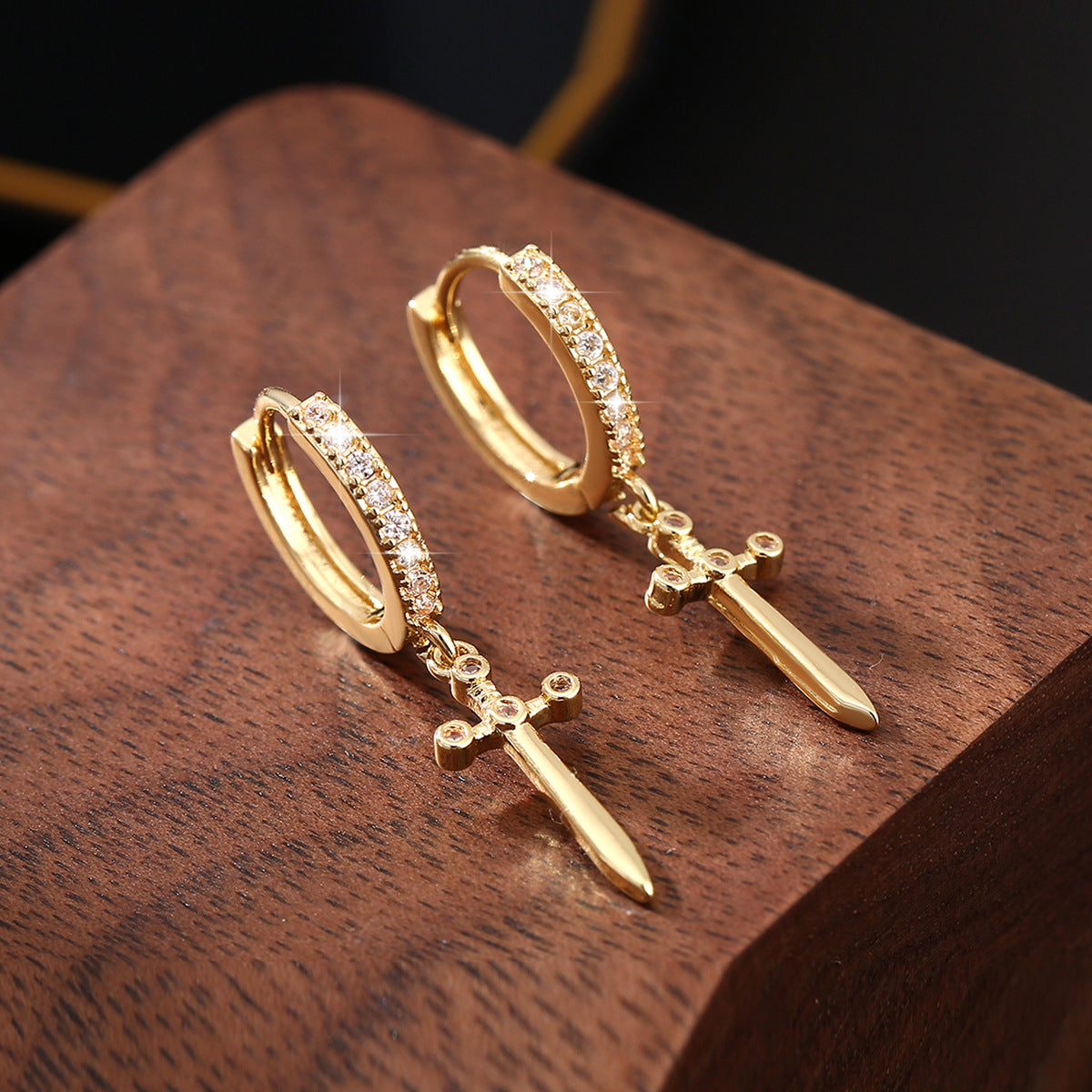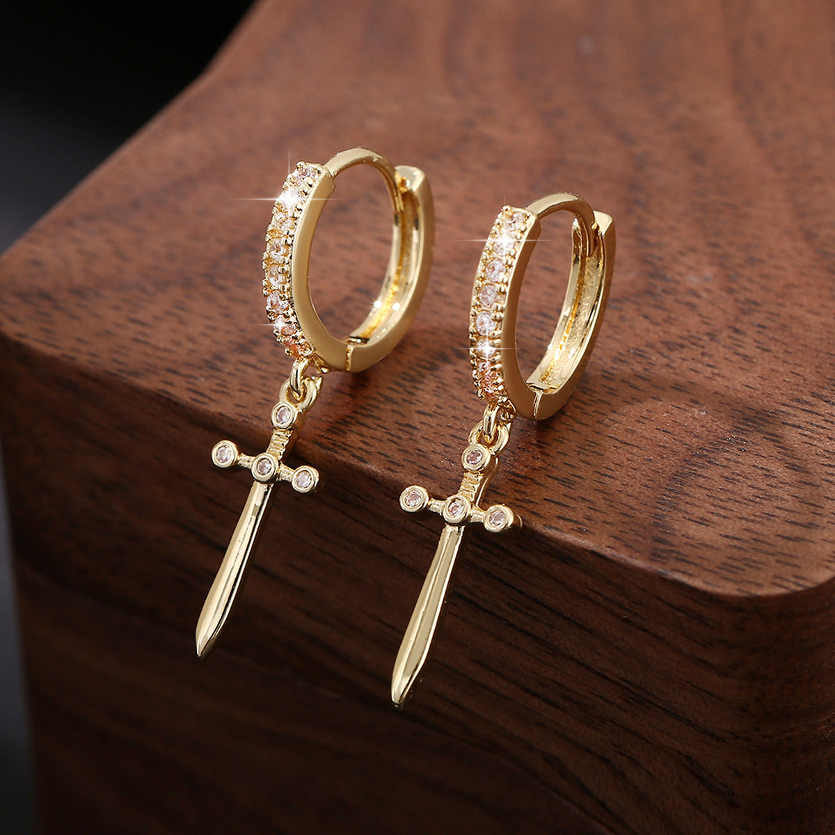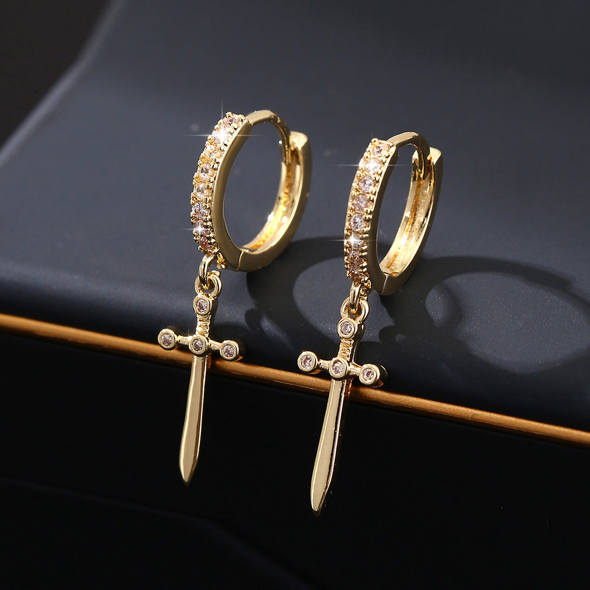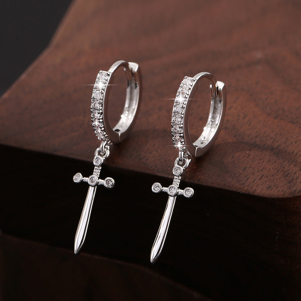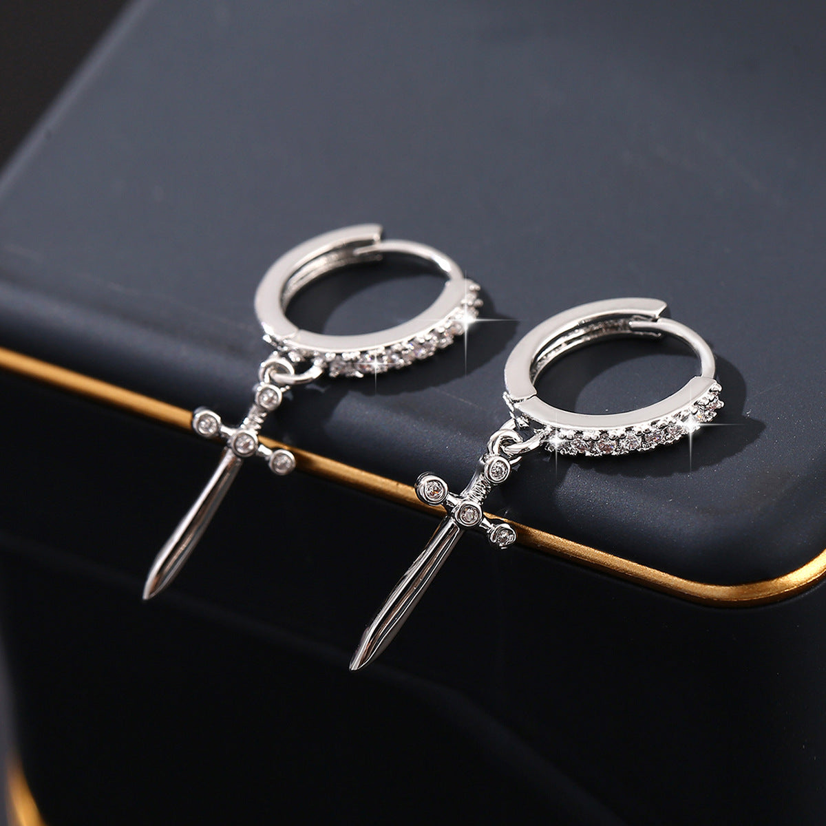 Men’s Sword Pendant Hoop Earrings Cubic Zirconia Huggie Design