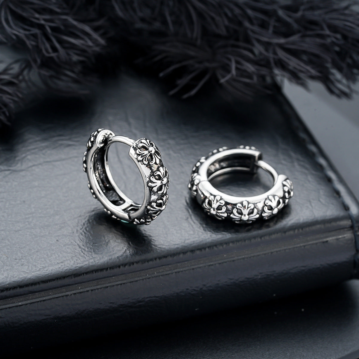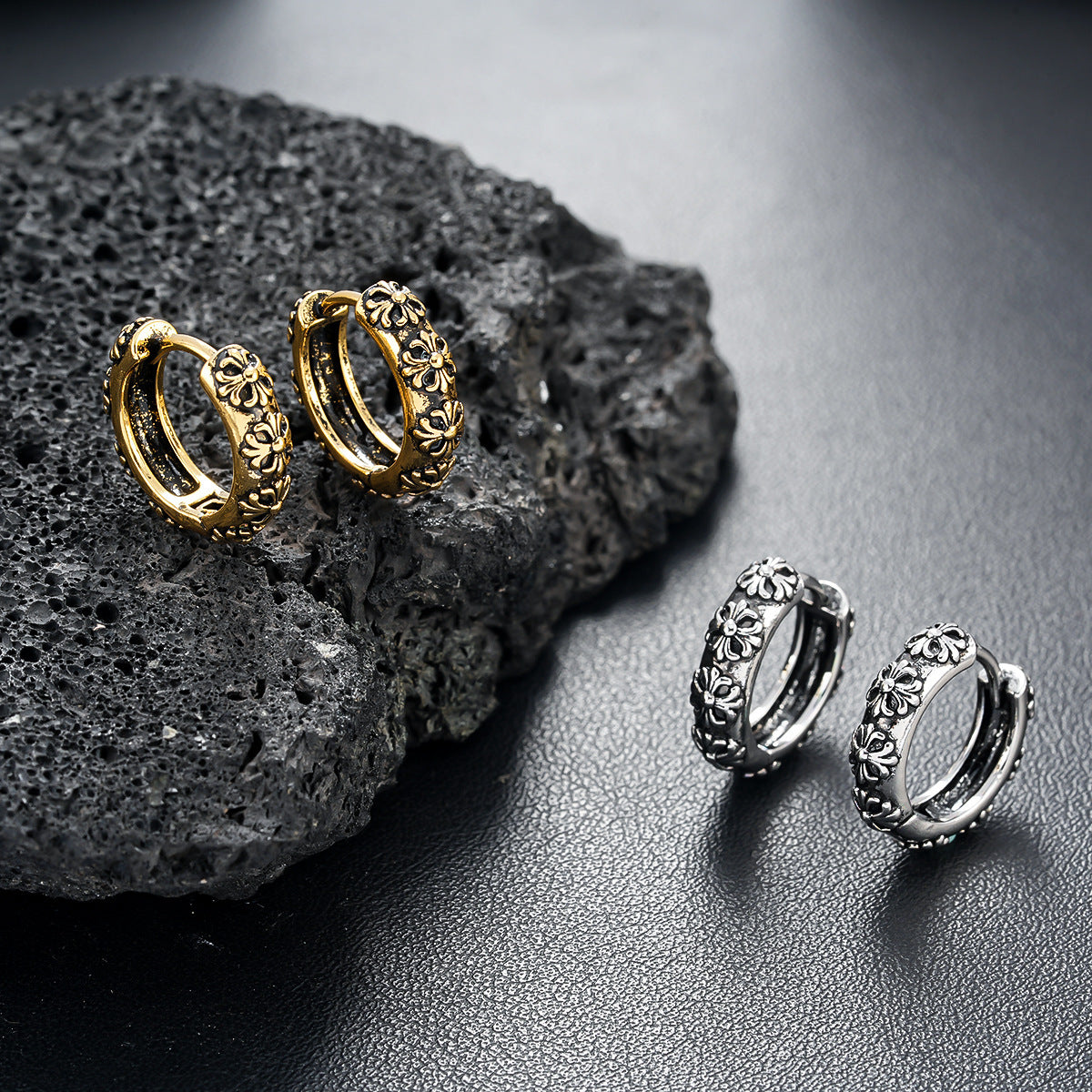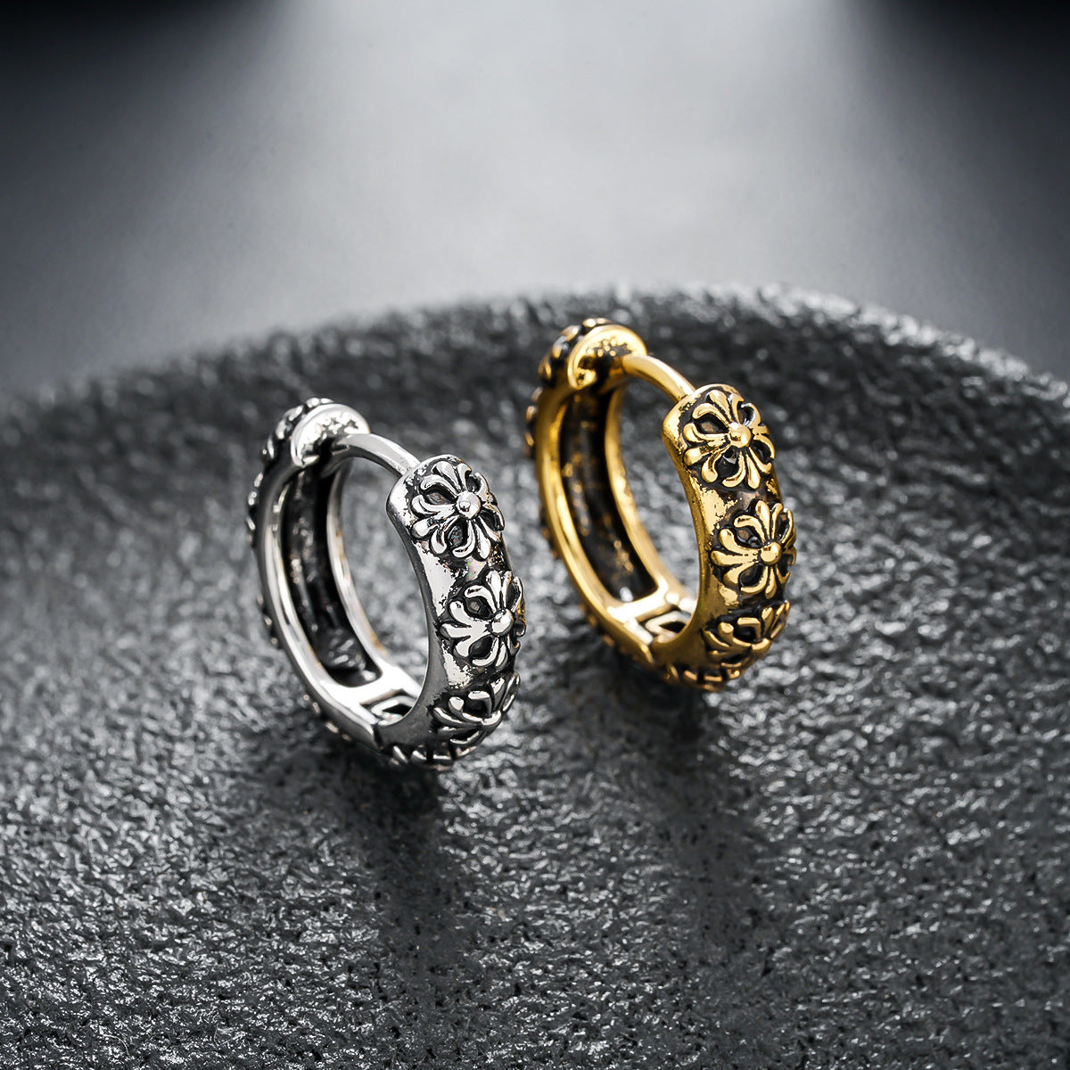 Unisex Vintage Floral Stainless Steel Hoop Earrings