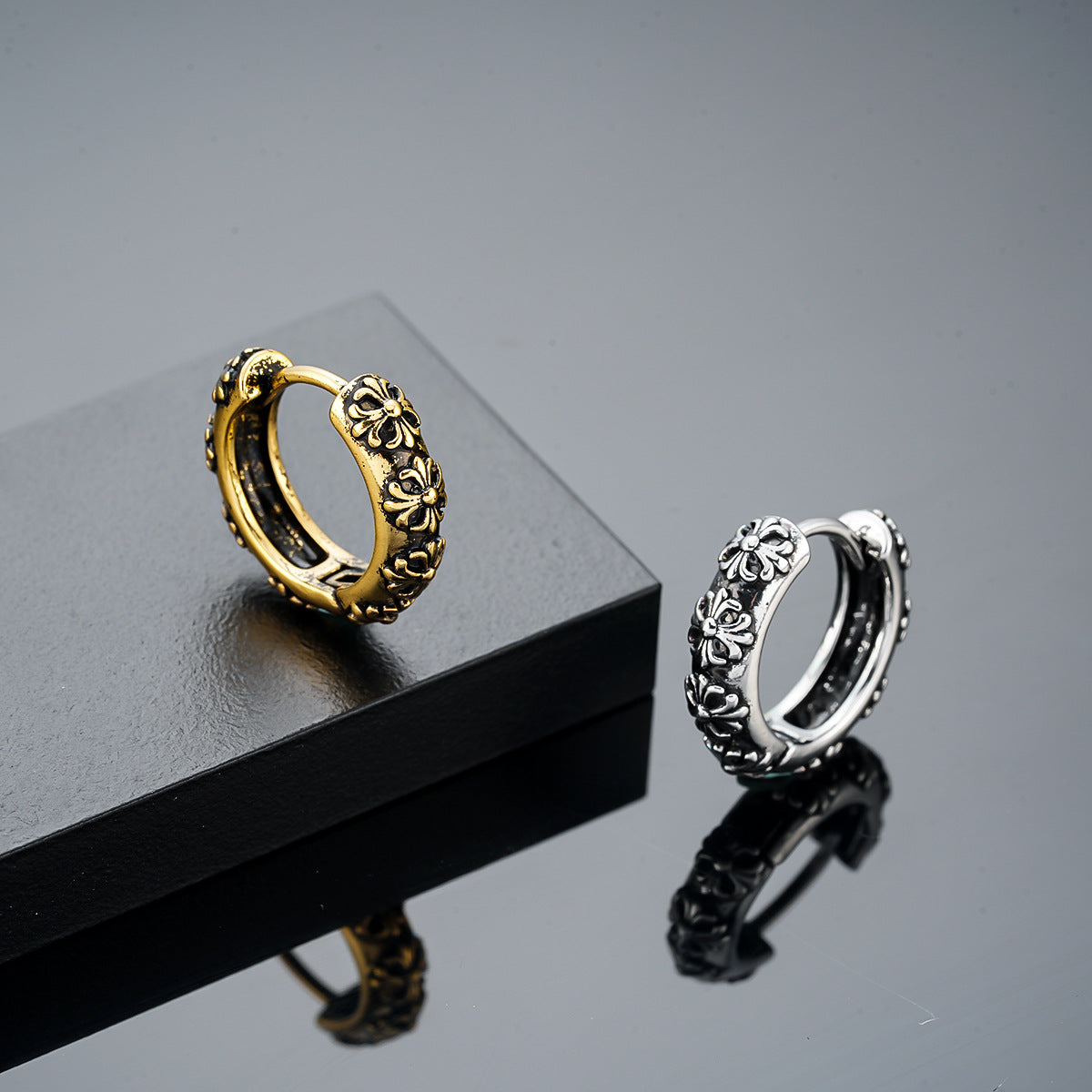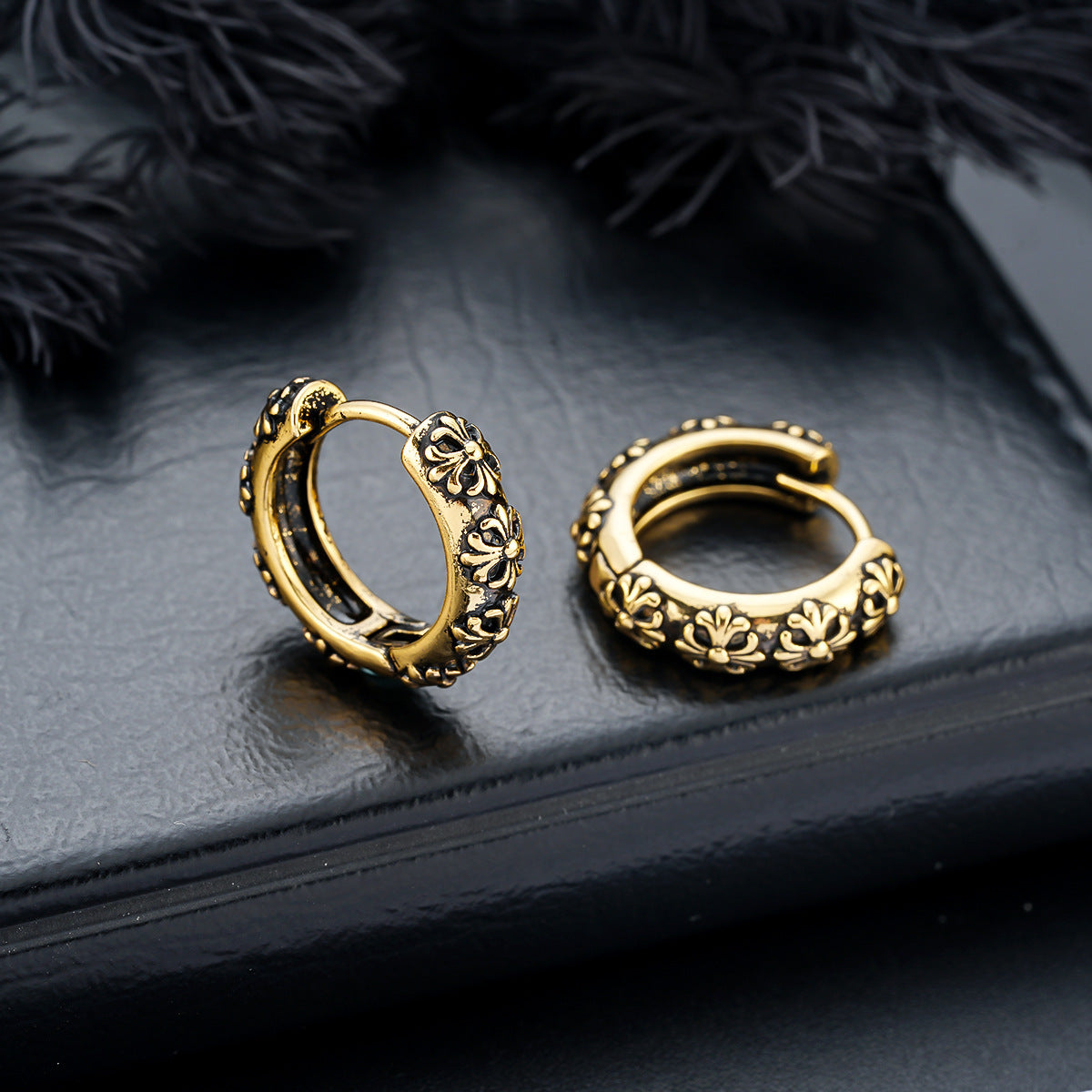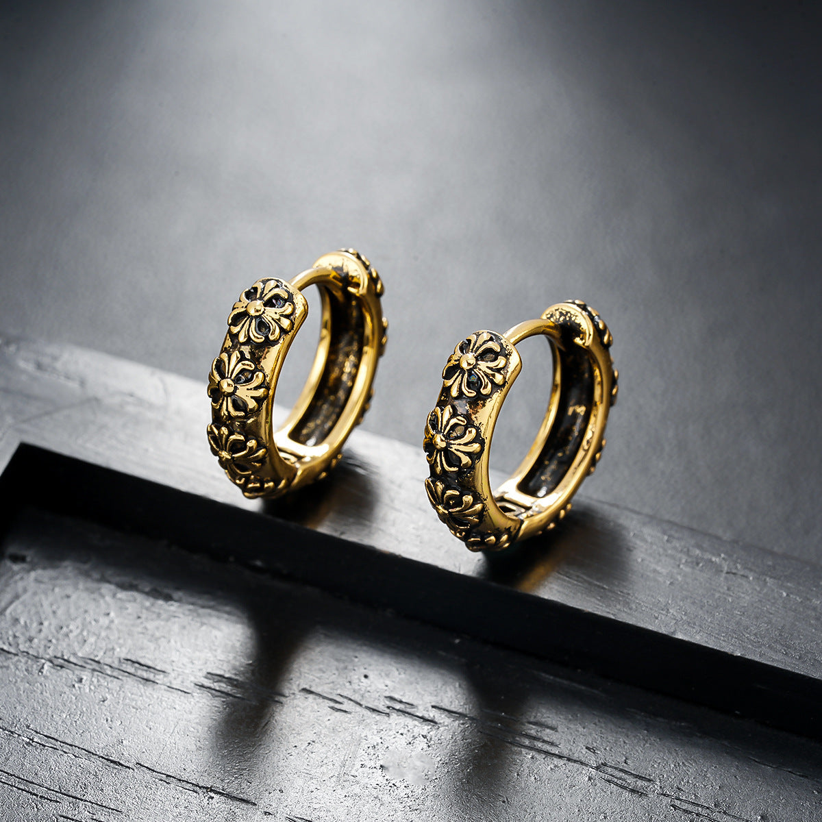 Unisex Vintage Floral Stainless Steel Hoop Earrings