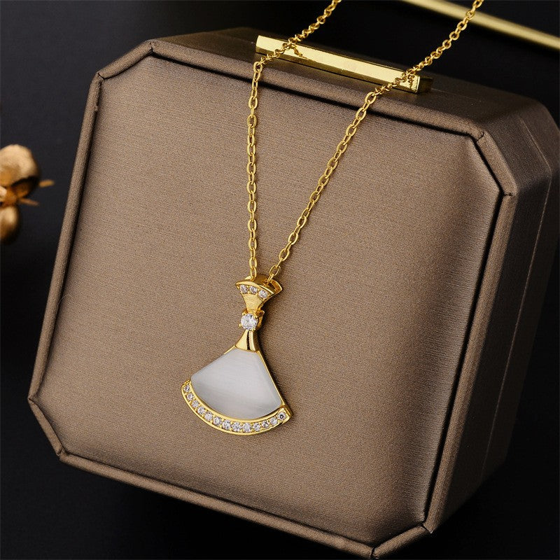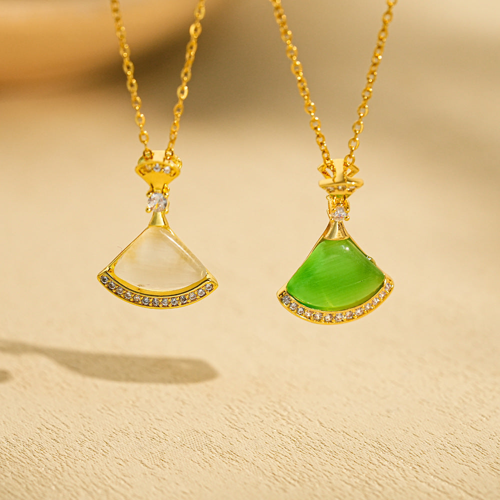 Women's Gold Fan Pendant Necklace