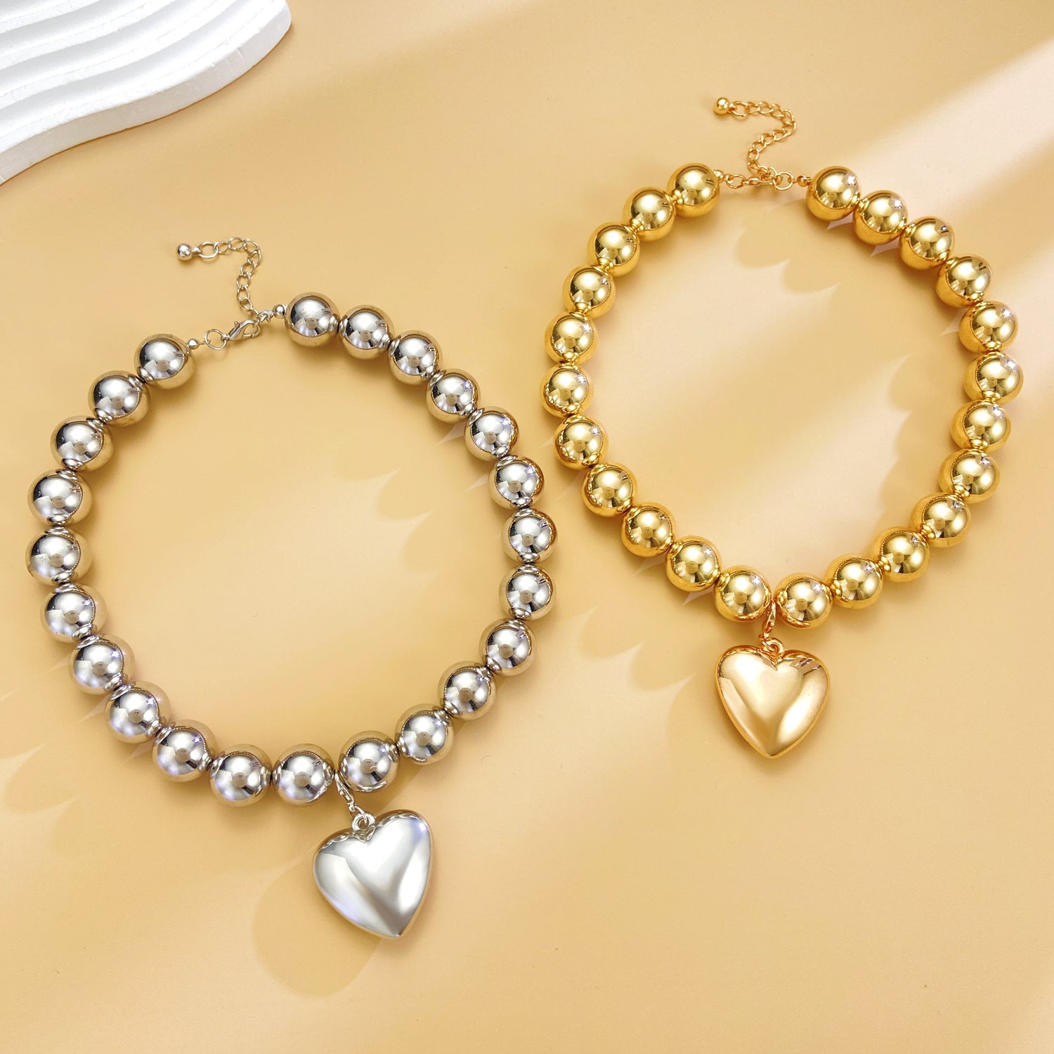 Women's Chunky Beaded Heart Choker Pendant Necklace