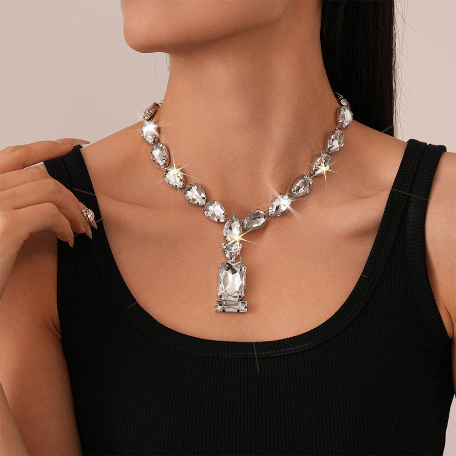 Teardrop Crystal Necklace – Sparkling Pendant Choker for Women