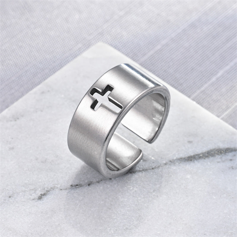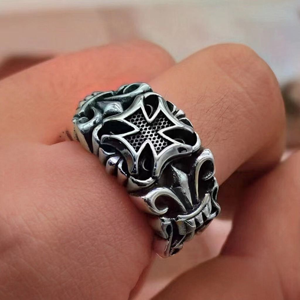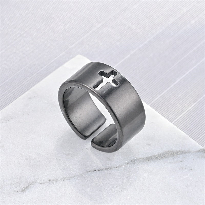 Men's Gothic Punk Cross Stainless Steel Adjustable Ring
