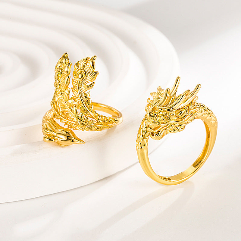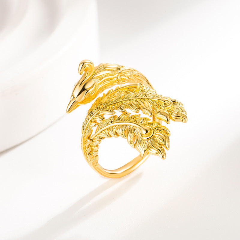 Unisex Phoenix Feather Ring Adjustable Sculpted Metal Jewellery