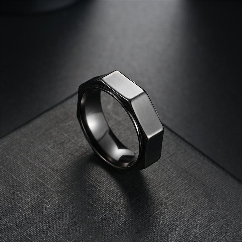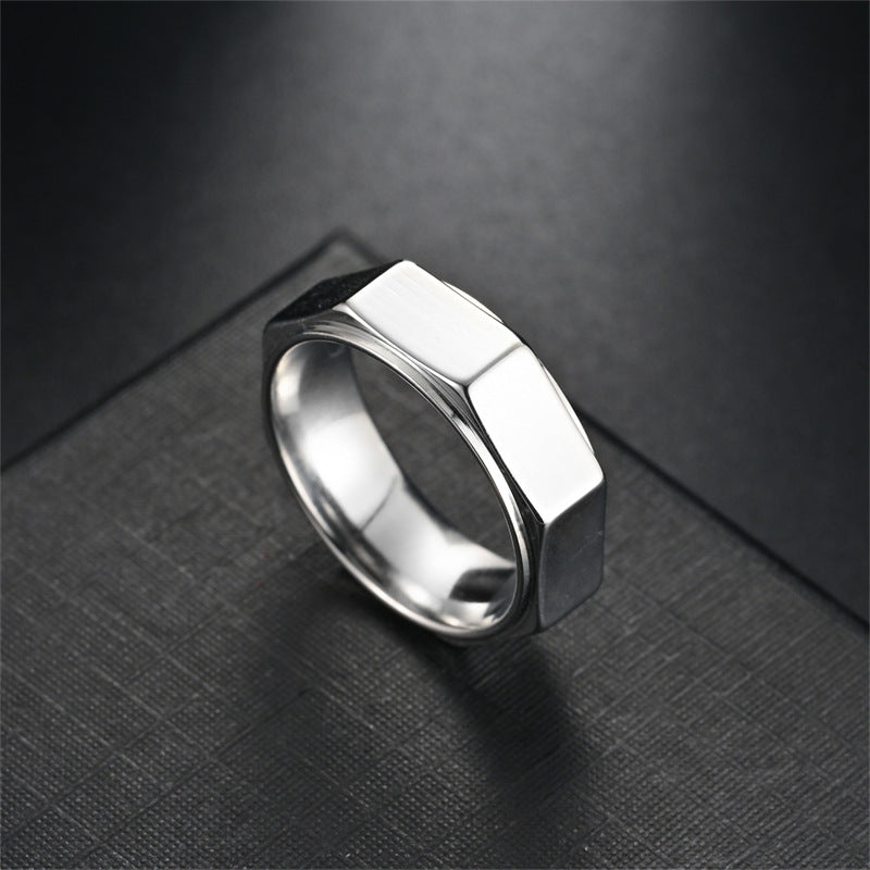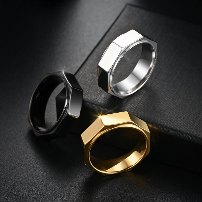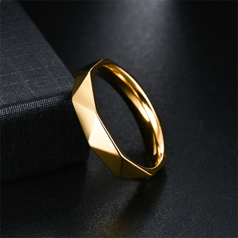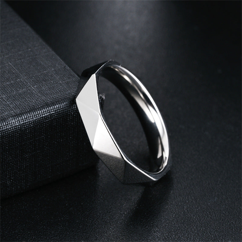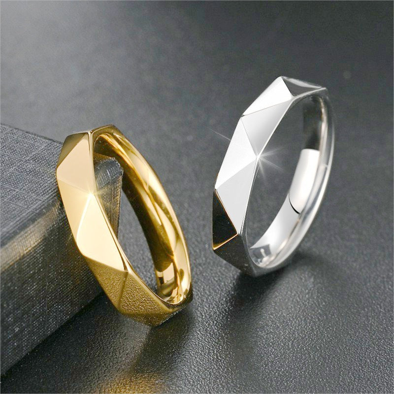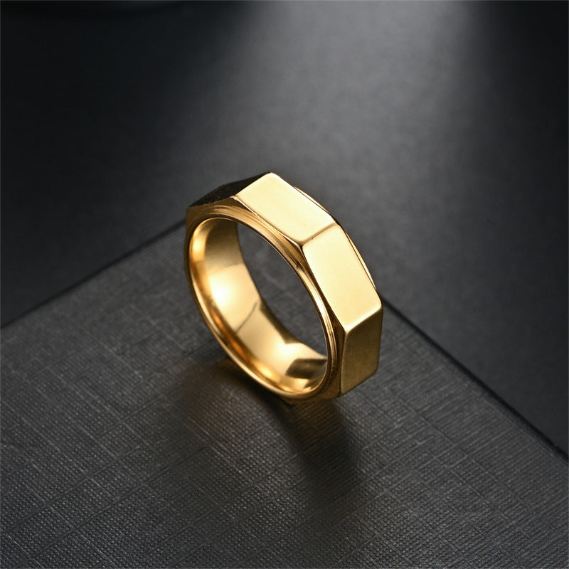 Unisex Geometric Facet Band Ring – Modern Hex Cut Design