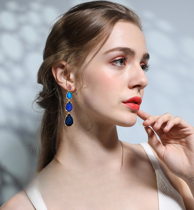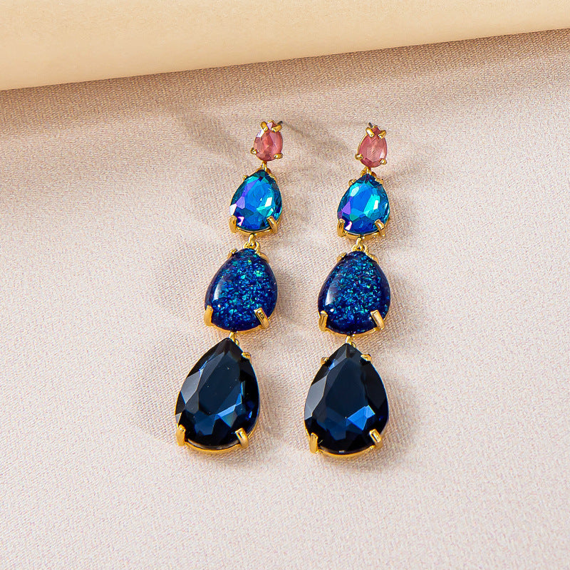 Triple Teardrop Dangle Earrings For Women – Statement Crystal Drop Jewellery