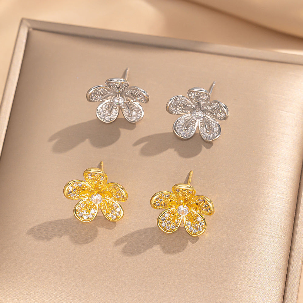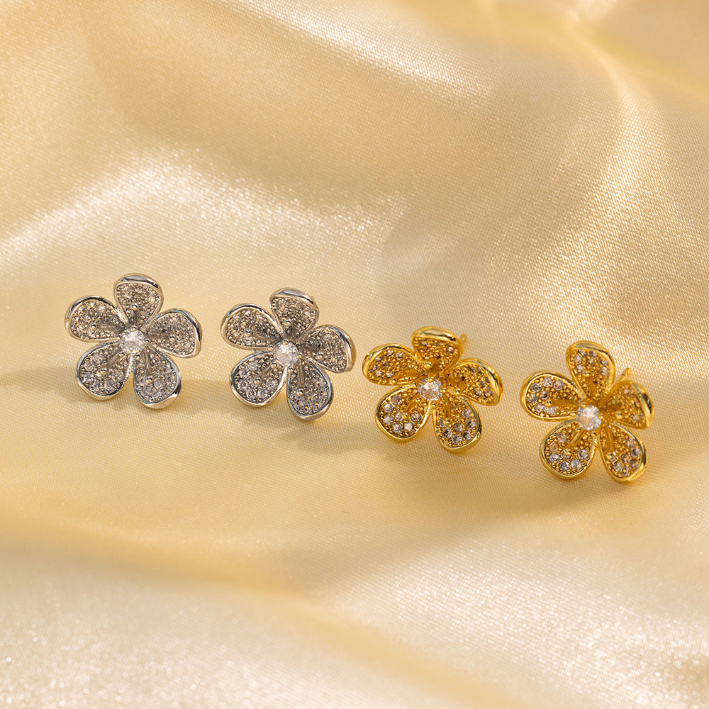 Floral Crystal Stud Earrings For Women – Sparkling Cluster Flower Jewellry