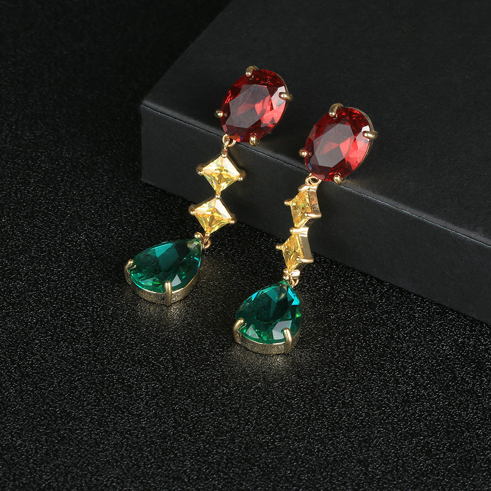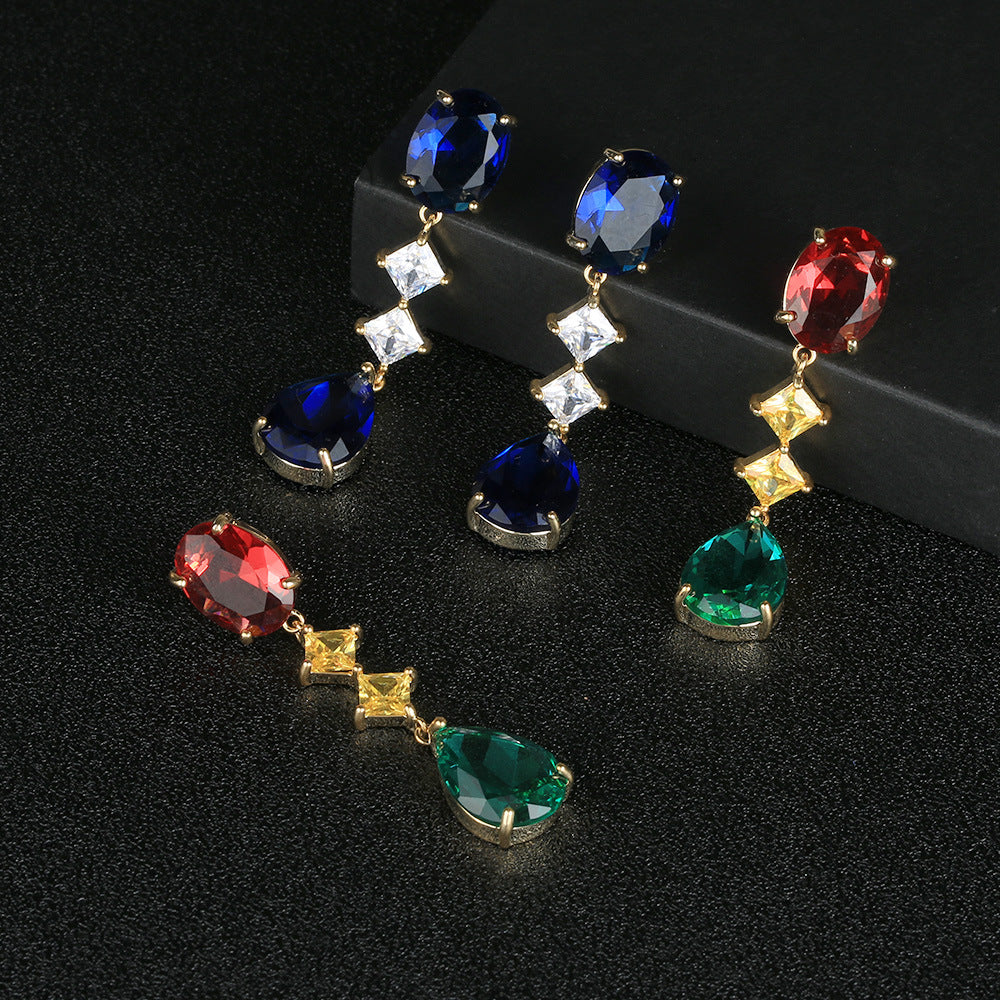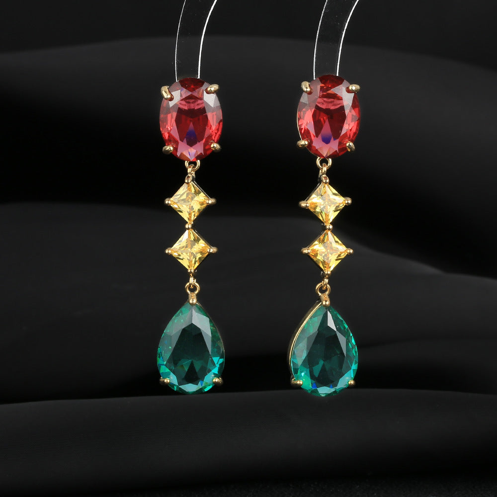 Women’s Multi-Stone Drop Earrings – Long Dangle Crystal Earrings