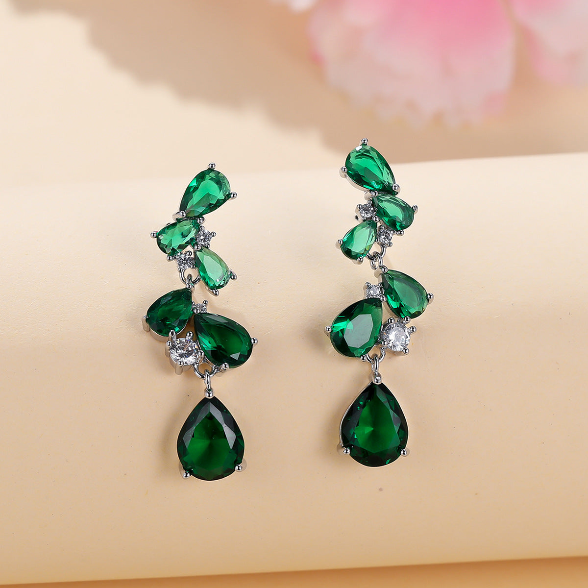 Emerald Fan Drop Earrings For Women – Luxury Crystal Statement Dangle Jewellry